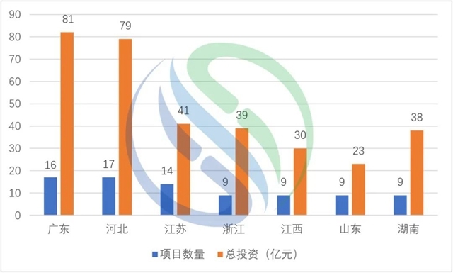 從上半年億級項目中標數(shù)量來看,河北以17個中標項目,排名第一;廣東16個排名第二,但總投資額度超過80億略高于河北的79億!江蘇14個排名第三,此外,浙江、江西、山東、湖南均以9個項目并列第四!從投資額度來看,前三名依次是,廣東81億,河北79億,江蘇41億。