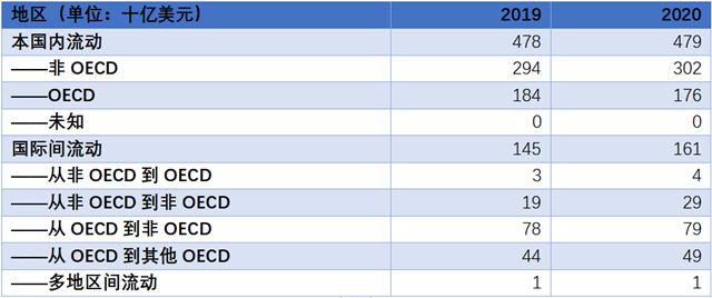 表2 2019-2020年全球OECD及非OECD國家氣候投融資資金流向