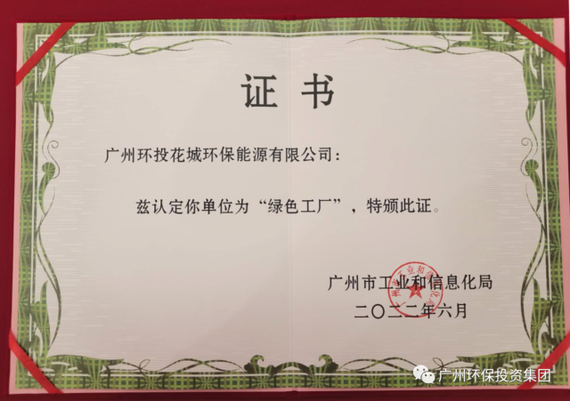 2022年6月30日,廣州市工業(yè)和信息化局公布2021年廣州市綠色制造示范項(xiàng)目名單,廣州環(huán)投集團(tuán)下屬環(huán)投花城公司榜上有名,獲得“綠色工廠”榮譽(yù)稱(chēng)號(hào)。