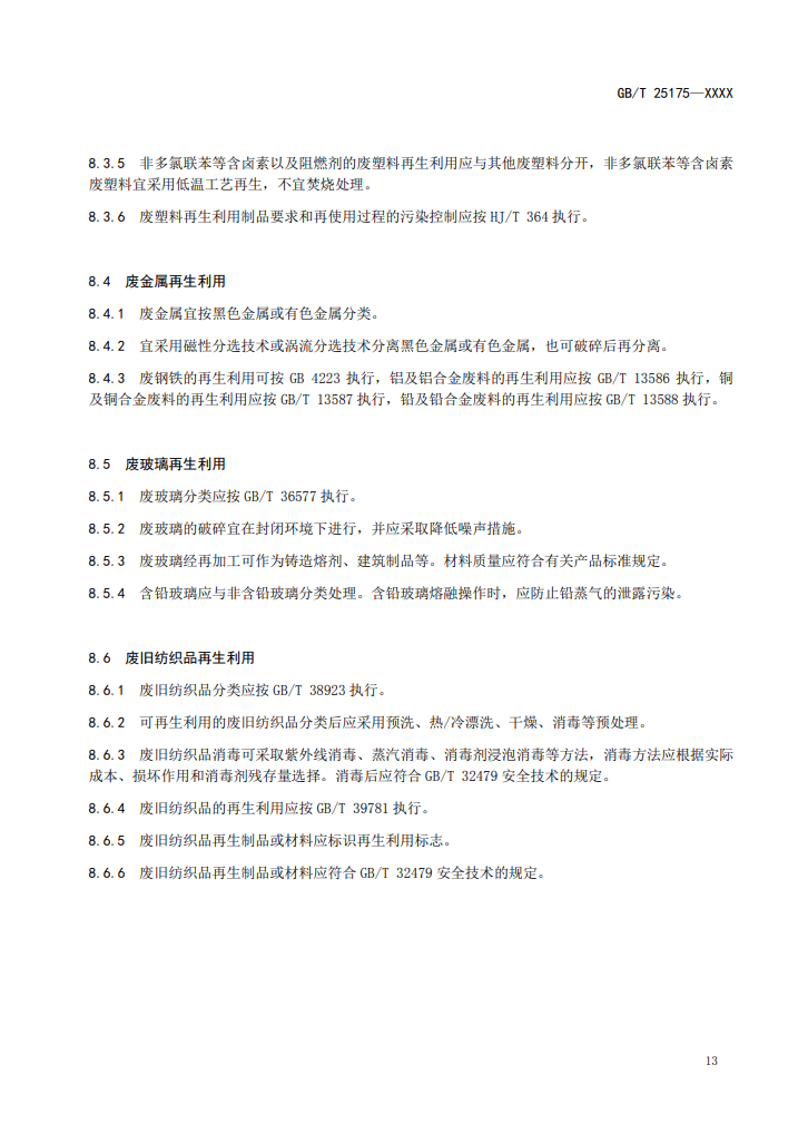 3、廢鋼鐵的再生利用可按GB4223執(zhí)行,鋁及鋁合金廢料的再生利用應按GB/T13586執(zhí)行,銅及銅合金廢料的再生利用應按GB/T13587執(zhí)行,鉛及鉛合金廢料的再生利用應按GB/T13588執(zhí)行。