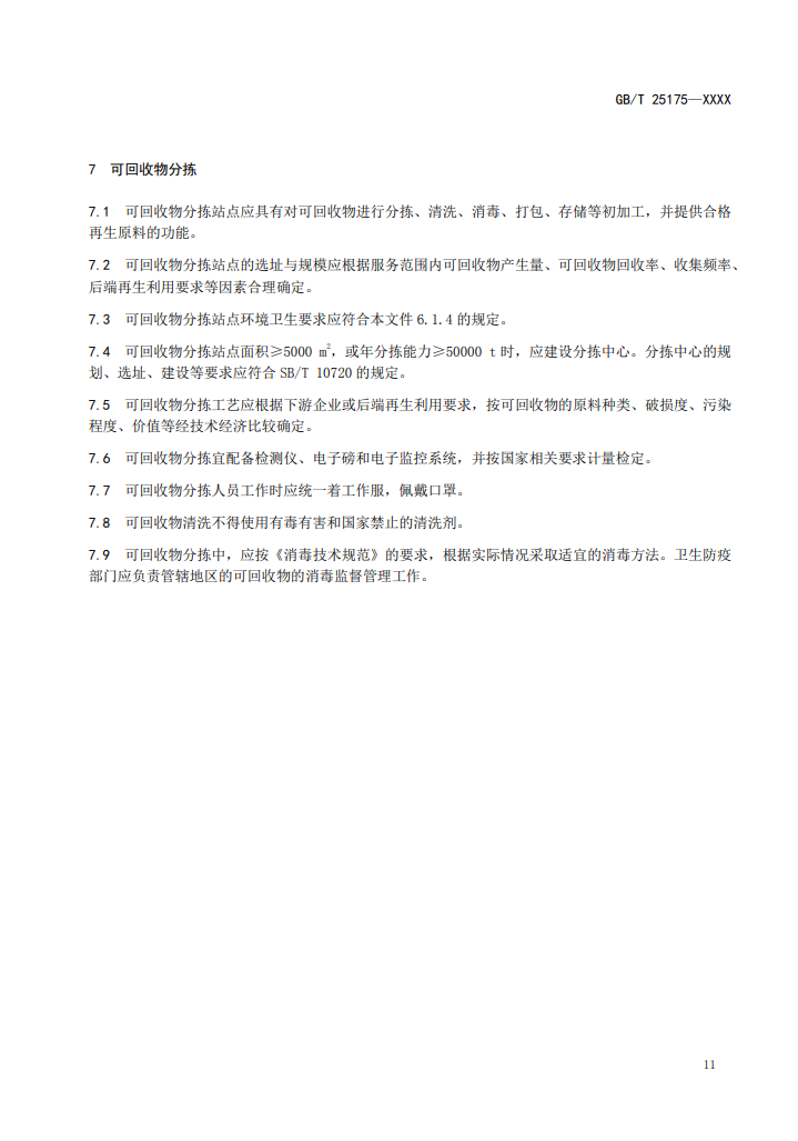 3、可回收物分揀站點環(huán)境衛(wèi)生要求應符合本文件6.1.4的規(guī)定。