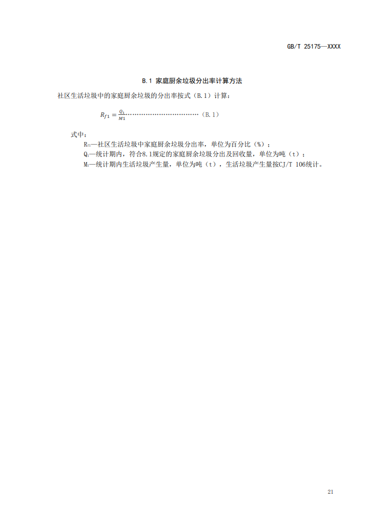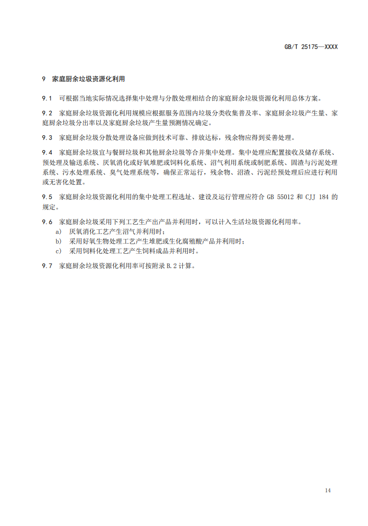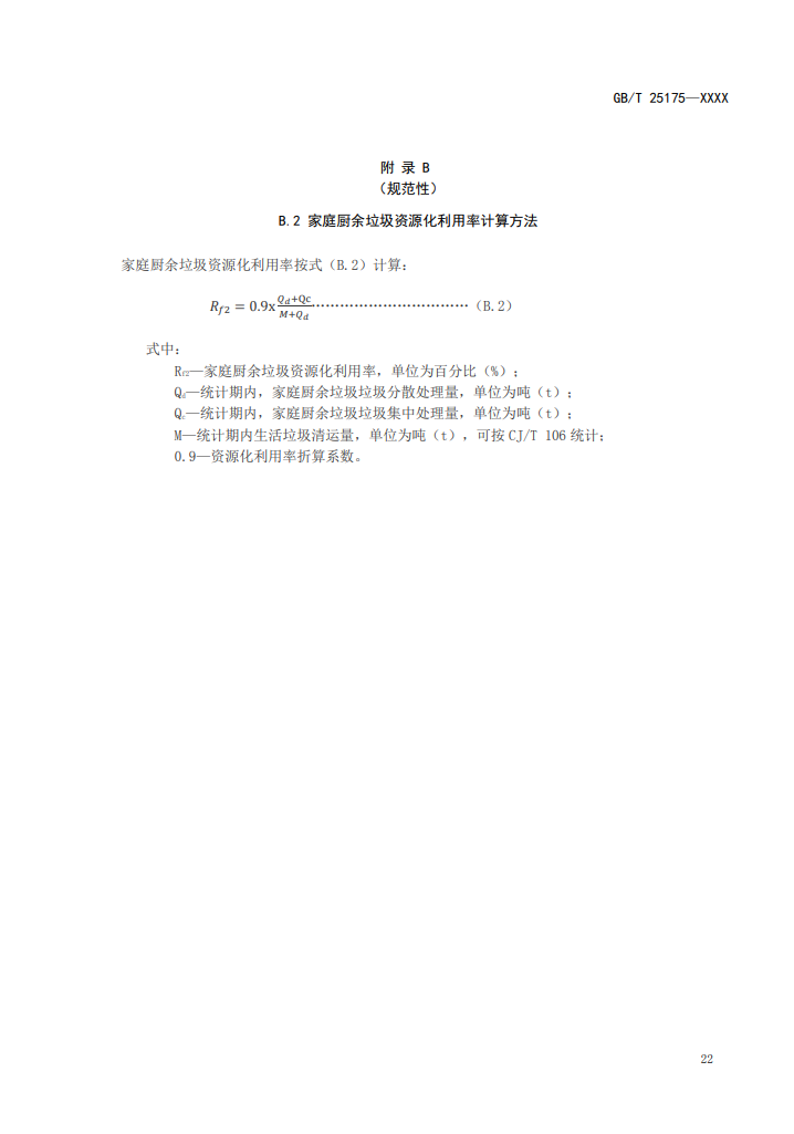 7、家庭廚余垃圾資源化利用率可按附錄B.2計算。