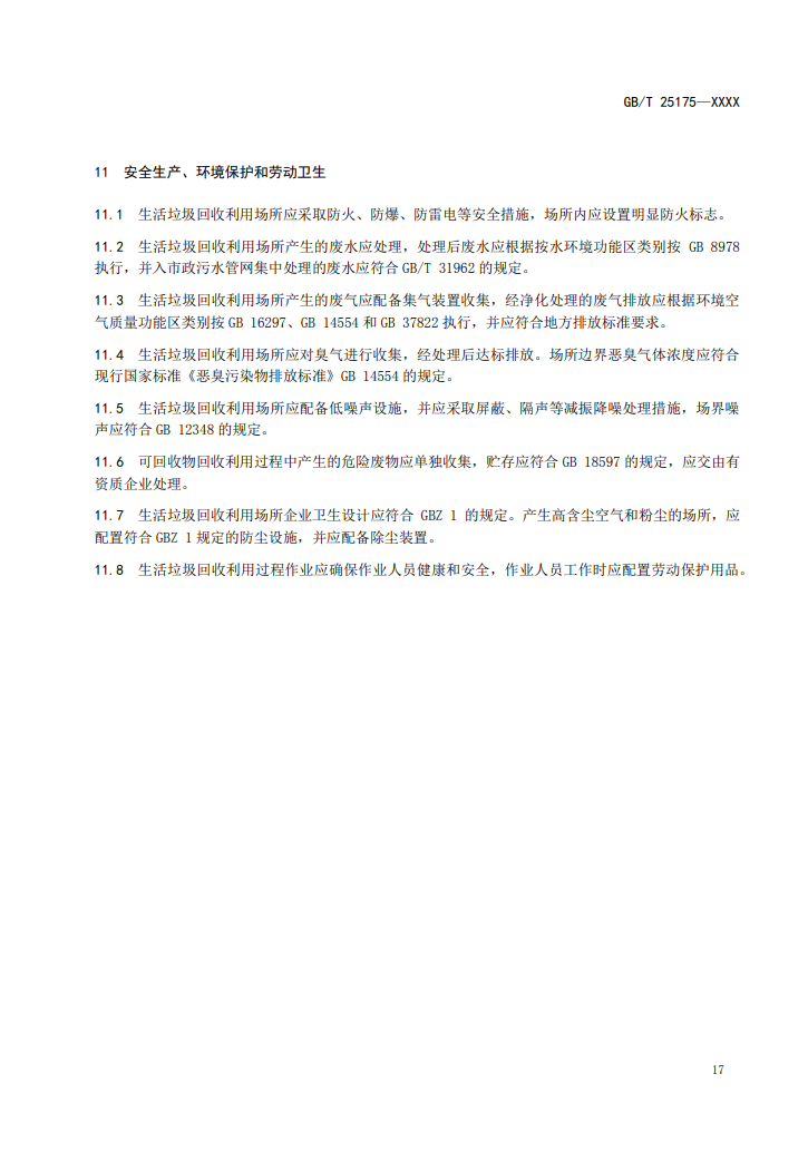 10、生活垃圾回收利用過程應落實安全生產、產品質量、勞動保護等要求。
