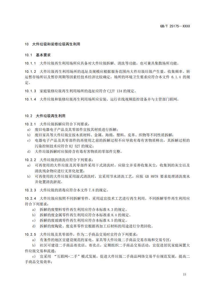 關于大件垃圾和裝修垃圾再生利用,標準提出如下基本要求: