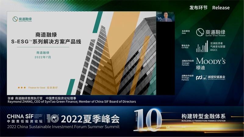在成果發(fā)布環(huán)節(jié),商道融綠首席執(zhí)行官、China SIF理事張睿介紹展示了商道融綠全新S-ESG系列解決方案。商道融綠基于十三年ESG專業(yè)積累,整合數(shù)千萬(wàn)ESG基礎(chǔ)數(shù)據(jù)、數(shù)十項(xiàng)ESG模型和算法以及近十個(gè)ESG主題數(shù)據(jù)平臺(tái),推出全新S-ESG系列解決方案,提供商業(yè)銀行、資管業(yè)、保險(xiǎn)業(yè)、證券業(yè)、私募股權(quán)業(yè)、工商企業(yè)、學(xué)術(shù)機(jī)構(gòu)及國(guó)際組織等一站式ESG及綠色金融落地解決方案。