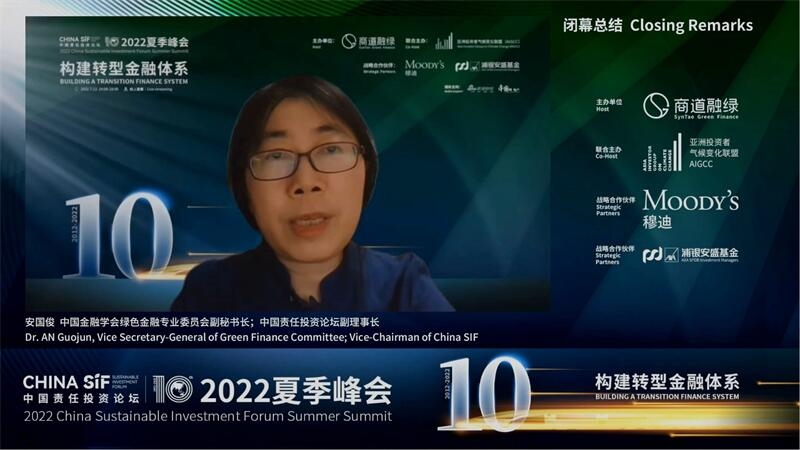 最后,中國(guó)金融學(xué)會(huì)綠色金融專業(yè)委員會(huì)副秘書長(zhǎng)、China SIF副理事長(zhǎng)安國(guó)俊博士做了總結(jié)發(fā)言。她指出,要充分發(fā)揮綠色金融和轉(zhuǎn)型金融的作用,首先要加強(qiáng)投資、金融、財(cái)稅等工具創(chuàng)新,激勵(lì)社會(huì)資本投入綠色低碳產(chǎn)業(yè)及轉(zhuǎn)型技術(shù)領(lǐng)域;完善綠色金融與綠色財(cái)政、產(chǎn)業(yè)政策協(xié)調(diào)發(fā)展的“1+N”政策體系,推進(jìn)綠色金融、轉(zhuǎn)型金融、可持續(xù)金融、氣候投融資、影響力協(xié)同發(fā)展。引導(dǎo)綠色基金ESG投資、資本向善的趨勢(shì)和體系的完善。同時(shí)也要逐步完善與轉(zhuǎn)型金融相關(guān)的行業(yè)標(biāo)準(zhǔn)、風(fēng)險(xiǎn)定價(jià)機(jī)制等“基礎(chǔ)設(shè)施”框架的搭建,培育綠色基金、碳中和基金等綠色投資者,將資管產(chǎn)品創(chuàng)新與社會(huì)責(zé)任承擔(dān)有效協(xié)同,為雙碳目標(biāo)構(gòu)建我國(guó)綠色金融與轉(zhuǎn)型金融協(xié)同發(fā)展的體系。