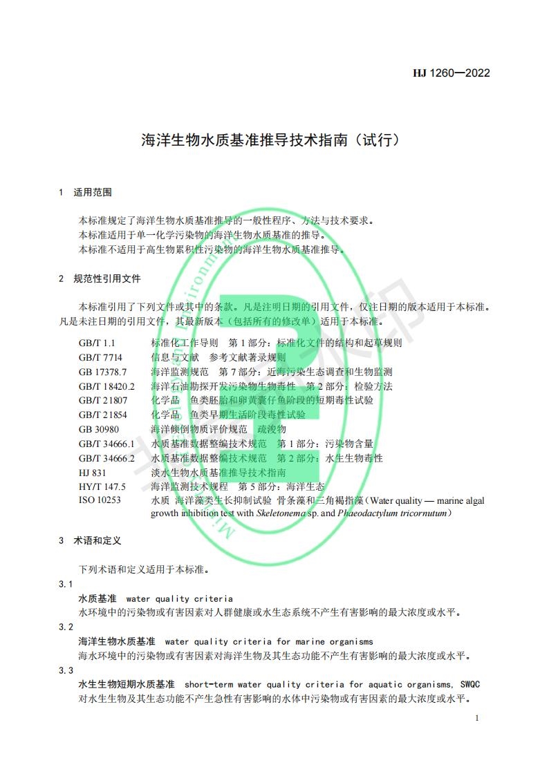 近日,生態(tài)環(huán)境部發(fā)布了《海洋生物水質(zhì)基準(zhǔn)推導(dǎo)技術(shù)指南(試行)》。本標(biāo)準(zhǔn)規(guī)定了海洋生物水質(zhì)基準(zhǔn)推導(dǎo)的一般性程序、方法與技術(shù)要求。本標(biāo)準(zhǔn)的附錄 A~附錄 E 為資料性附錄。本標(biāo)準(zhǔn)為首次發(fā)布。