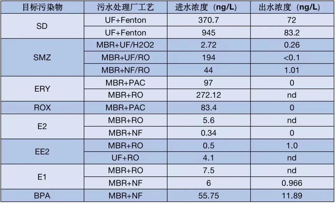 這3種投加方式均可實現對新污染物的穩(wěn)定去除,但對比來看:選擇適宜的PAC,優(yōu)化其投加量可提高吸附去除效率。有研究表明,隨著溶解性有機碳的增加,PAC對新污染物的吸附效率逐漸降低,當二級出水中有機碳在5~10mg/L范圍內時,需要投加10~20mg/LPAC,可達到對新污染物的有效去除(>80%),同時能達到對有機碳最高40%的去除率,水力停留時間為20~30min,PAC的停留時間為1~2d。采用PAC吸附作為升級改造工藝去除新污染物,電能消耗將提高10%~30%,總成本將提高5%~35%。在實際運行中,PAC吸附工藝會產生大量的含炭污泥,使污泥處理能耗相應增加。據研究數據表明,PAC投加量為10~20 mg/L時,PAC吸附工藝的電能消耗約為0.02 kWh/m3,后加砂濾單元產生的電能消耗約為0.06 kWh/m3。采用PAC回流到生物池的工藝比不采用回流的工藝對新污染物的去除率可提高10%~50%,但同時也會增加5%~10%的污泥。GAC過濾器一般置于常規(guī)污水處理廠工藝中的二沉池之后,既可吸附又可過濾,它可以連續(xù)運行,無需后續(xù)的分離步驟。但GAC成本較高,再生困難,因此在實際應用中不如PAC廣泛。活性炭吸附過程受許多因素的影響,包括活性炭本身特性(如所用材料、比表面積和表面化學特性等)、新污染物的物化特性(主要是疏水性、溶解性、電荷和分子大小等)、溶液的化學特性和組分(如可溶解性有機物DOM等)和活性炭投加量、吸附質的濃度等其他基本參數。在新污染物的去除技術中,膜分離技術同樣也受到了很多關注,其中以納濾(NF)和反滲透(RO)對新污染物的去除效果最好。NF和RO技術均采用高壓膜,由于它們的孔徑極小,可以截留較小分子量物質,一般應用于無機離子和有機污染物的截留。RO膜可以有效截留(>90%)水中有機小分子物質;雖然NF膜由于孔徑稍大截留效果不如RO膜,但NF技術的能耗較低,在對新污染物的去除中,具有明顯的操作和成本優(yōu)勢。值得一提的是,低壓膜如微濾(MF)膜和超濾(UF)膜由于孔徑較大,不足以截留大部分 新污染物,但因為污水處理廠二級出水中仍含有相對較高濃度的有機物,會對NF/RO的截留效果造成不利影響,所以MF/UF經常作為NF/RO的前處理工藝。有機物是導致膜污染的主要原因,長期運行時會造成NF/RO膜通量下降、截留效果降低,因此在處理二級出水時,采用MF/UF作為前處理工藝,對于維持NF/RO的長期穩(wěn)定運行十分必要。膜對新污染物的截留率取決于新污染物的物化特性(分子大小和重量,電荷和疏水性)、膜特性(膜材料、孔徑等)及操作條件等。值得一提的是,不同材料的膜對同種新污染物的截留效果不同,同種膜對不同新污染物的截留效果也不同。目前將NF/RO技術作為實際污水處理廠的升級改造工藝的報道并不多,其主要限制因素是能耗較高、膜污染以及膜分離過程中產生大量需要處理的濃縮液等。膜生物反應器(MBR)具有污泥濃度高、生物種類多、出水水質穩(wěn)定、固液分離能力強等特點。MBR的膜表面能夠有效的截留有機污染物,使污染物與污水進行分離,所以MBR對大多數的有機污染物的截留效果較好。但較長的SRT也可能會導致MBR中懸浮基質活性生物量減少,影響對抗生素的去除。而且MBR對有機污染物的去除效率還受到污泥濃度、溫度和pH值等因素的影響。通過研究MBR工藝在污水處理廠中對新興污染物的去除,有學者發(fā)現其對E1、E3和BPA的去除率達到了100%;還有學者利用MBR工藝處理污水中的抗生素和新興生物群落,研究表明其對TC和CTC的去除率分別為93.6%和83.9%。盡管深度處理能夠去除大部分的新污染物,但仍有一部分新污染物沒有被去除。為此,在實際污水處理工藝中通常把多種深度處理技術聯合使用,取長補短,有效地提高有機污染物的去除效率。根據文獻資料,小編列舉了多種組合工藝對幾種典型新污染物的去除效果,由圖中可以看出組合工藝對于新污染物的去除效率較高。這是一種高效的水處理工藝,對污水處理廠出水水質有了很大的提升,這類聯合工藝對有機污染物的去除具有顯著的效果以及使用價值。雖然在2015年提出開展全國性環(huán)境激素整體監(jiān)測行動,但由于缺乏環(huán)境內分泌干擾物(EDCs)的篩選和評估框架,以及監(jiān)測范圍和技術限制等原因,導致目前仍然無法全面掌握我國近年來環(huán)境內分泌干擾物(EDCs)的生產、使用和排放現狀。同時,大多數新污染物還未納入環(huán)境監(jiān)測體系內,對于全氟辛烷磺酸(PFOS)等新污染物缺乏監(jiān)管,導致許多全氟辛烷磺酸(PFOS)超標的工業(yè)廢水直接排放。雖然在2005年建立了全國細菌耐藥監(jiān)測計劃,但存在監(jiān)測標準和方法不統(tǒng)一、監(jiān)測覆蓋面不充分、信息公開不夠及時等問題。2、新污染物的管理涉及多個部門,職能交叉,缺乏統(tǒng)籌協調,污染治理低效例如塑料的生產使用、入海塑料處理、海洋塑料打撈分解、微塑料源頭管控及監(jiān)測等環(huán)節(jié),涉及自然資源部、國家發(fā)展和改革委員會、農業(yè)農村部、生態(tài)環(huán)境部等多個部門。再如抗生素從生產研發(fā)、流通使用到排放監(jiān)測等環(huán)節(jié),涉及衛(wèi)生健康、生態(tài)環(huán)境、食品安全、農業(yè)、醫(yī)藥等部門。更重要的是,新污染物易于在水體和空氣中擴散,部分環(huán)境內分泌干擾物(EDCs)和全氟化合物(PFCs)具有長距離遷移性及環(huán)境累積性,但目前尚未建立區(qū)域