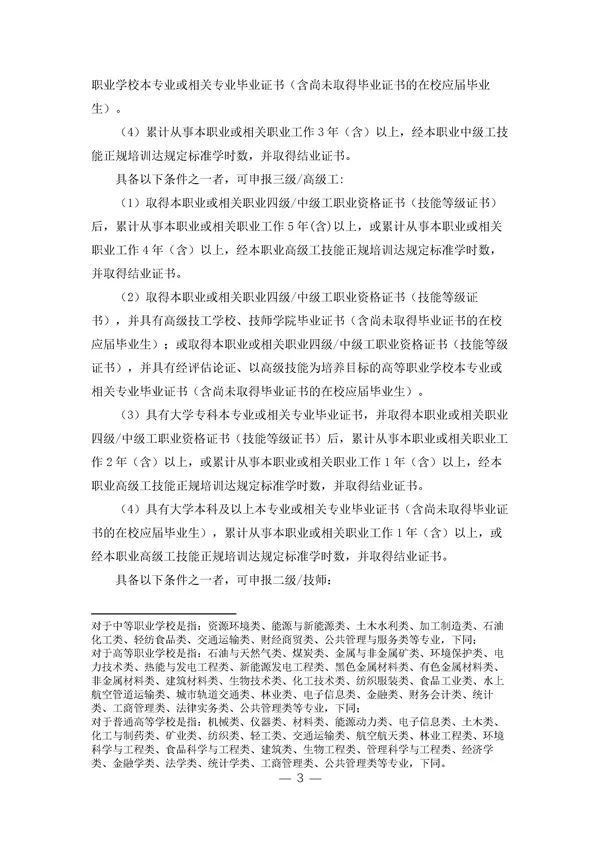 其中碳排放監(jiān)測(cè)員、碳排放核算員、碳排放核查員、碳排放交易員、民航碳排放管理員等五個(gè)工種共設(shè)五個(gè)等級(jí),分別為:五級(jí)/初級(jí)工、四級(jí)/中級(jí)工、三級(jí)/高級(jí)工、二級(jí)/技師、一級(jí)/高級(jí)技師。其中,五級(jí)/初級(jí)工不分工種,統(tǒng)稱(chēng)碳排放管理員五級(jí)/初級(jí)工。碳排放咨詢(xún)員共設(shè)三個(gè)等級(jí),分別為:三級(jí)/高級(jí)工、二級(jí)/技師、一級(jí)/高級(jí)技師。五級(jí)/初級(jí)工40標(biāo)準(zhǔn)學(xué)時(shí);四級(jí)/中級(jí)工、三級(jí)/高級(jí)工分別80標(biāo)準(zhǔn)學(xué)時(shí);三級(jí)/高級(jí)工80標(biāo)準(zhǔn)學(xué)時(shí);二級(jí)/技師、一級(jí)/高級(jí)技師100標(biāo)準(zhǔn)學(xué)時(shí)。