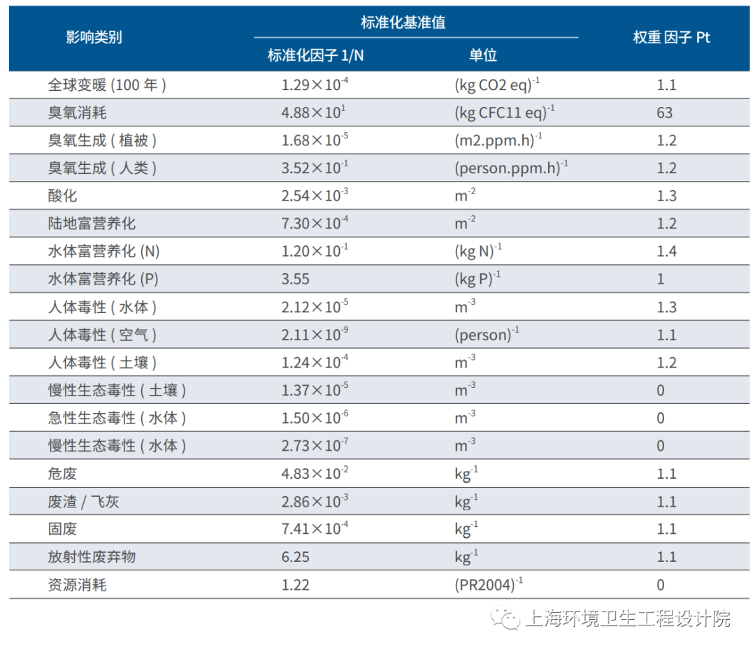 表1 EDIP2003方法的影響類別、標準化因子和權(quán)重因子