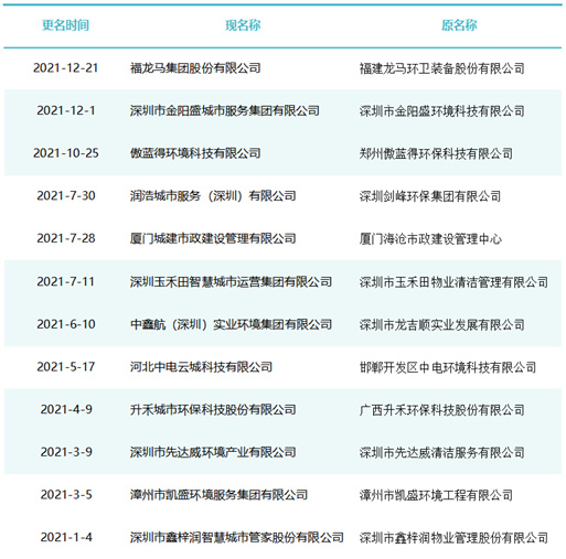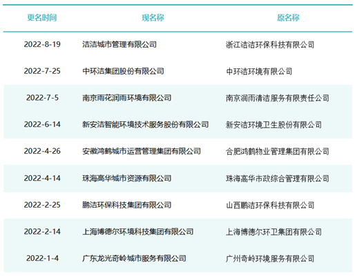 作為玉禾田[300815]最主要的環(huán)衛(wèi)項(xiàng)目投標(biāo)主體,玉禾田物業(yè)清潔公司在名稱(chēng)上用“智慧城市運(yùn)營(yíng)”替換“物業(yè)清潔”,則是希望轉(zhuǎn)型邁向智慧城市運(yùn)營(yíng)商之路。司南君在對(duì)近八年的更名規(guī)律進(jìn)行總結(jié)與梳理發(fā)現(xiàn),環(huán)衛(wèi)企業(yè)“更名潮”大概可以分為三個(gè)階段。第一波更名潮從2015-2018年。第一波更名潮追求專(zhuān)業(yè)化發(fā)展道路,這個(gè)時(shí)期的更名熱詞是“環(huán)境服務(wù)”、“環(huán)境科技”、”環(huán)保產(chǎn)業(yè)“、“環(huán)保技術(shù)”,一大批清潔公司、保潔公司、環(huán)衛(wèi)公司、物業(yè)公司更名為“環(huán)境服務(wù)公司”、“環(huán)境科技公司”、”環(huán)保技術(shù)公司“。第二波更名潮從2019年到2021年。第二波更名潮集體轉(zhuǎn)向城市綜合服務(wù)方向。這一時(shí)期的更名熱點(diǎn)是“城市管理”、“城市服務(wù)”、“城市管家”、“智慧城市運(yùn)營(yíng)”、“公共事業(yè)管理”等,用這些熱詞替代“環(huán)保技術(shù)”、“環(huán)衛(wèi)服務(wù)”、“環(huán)境科技”、“環(huán)境服務(wù)”等傳統(tǒng)環(huán)衛(wèi)詞匯。進(jìn)入2022年度,環(huán)衛(wèi)企業(yè)迎來(lái)第三波更名潮。今后一定時(shí)期,環(huán)衛(wèi)行業(yè)的發(fā)展將面臨多重挑戰(zhàn),環(huán)衛(wèi)企業(yè)更名也將更富多元化,因此企業(yè)更名也必將根據(jù)每家公司對(duì)行業(yè)發(fā)展的理解認(rèn)識(shí)及自身戰(zhàn)略定位而各有側(cè)重。2015年到2018年是環(huán)衛(wèi)市場(chǎng)化第一波大發(fā)展時(shí)期。圖表1:2018年度更名“百?gòu)?qiáng)企業(yè)”這期間,環(huán)衛(wèi)市場(chǎng)化大閘初步敞開(kāi),PPP模式引入環(huán)衛(wèi)領(lǐng)域,城鄉(xiāng)環(huán)衛(wèi)一體化模式如火如荼,年化額超千萬(wàn)元、合同額超億元的環(huán)衛(wèi)大標(biāo)開(kāi)始批量出現(xiàn),傳統(tǒng)物業(yè)清潔企業(yè)、非環(huán)衛(wèi)類(lèi)物業(yè)公司大量涌入環(huán)衛(wèi)行業(yè)。圖表2:2017年度更名“百?gòu)?qiáng)企業(yè)”因此,環(huán)衛(wèi)企業(yè)第一波更名潮追求專(zhuān)業(yè)化發(fā)展道路,這個(gè)時(shí)期的更名熱詞是“環(huán)境服務(wù)”、“環(huán)境科技”、”環(huán)保產(chǎn)業(yè)“、“環(huán)保技術(shù)”,一大批清潔公司、保潔公司、環(huán)衛(wèi)公司、物業(yè)公司更名為“環(huán)境服務(wù)公司”、“環(huán)境科技公司”、”環(huán)保技術(shù)公司“。圖表3:2016年度更名“百?gòu)?qiáng)企業(yè)”圖表4:2015年度更名“百?gòu)?qiáng)企業(yè)”這期間有近40家百?gòu)?qiáng)企業(yè)或日后發(fā)展成百?gòu)?qiáng)企業(yè)的環(huán)衛(wèi)公司完成了更名,如福建東飛環(huán)境集團(tuán)有限公司、濱南生態(tài)環(huán)境集團(tuán)股份有限公司、北京慧豐清軒環(huán)境科技集團(tuán)有限公司、河北人和環(huán)境科技有限公司、浙江波普環(huán)境服務(wù)有限公司、深圳市陽(yáng)光三環(huán)生態(tài)環(huán)境股份有限公司、深圳世路源環(huán)境有限公司(深兄環(huán)境)、廣東美保環(huán)境技術(shù)有限公司、泓欣環(huán)境集團(tuán)有限公司等。第二波:從“環(huán)衛(wèi)服務(wù)”到“城市管家”2019年到2021年是“環(huán)衛(wèi)市場(chǎng)化”高潮向“城市大管家模式”的轉(zhuǎn)型期初期。圖表5:2021年度更名“百?gòu)?qiáng)企業(yè)”這期間,環(huán)衛(wèi)市場(chǎng)化從大發(fā)展走向大高潮,城市精細(xì)化管理從“理念”走向“實(shí)踐”,各路國(guó)有物業(yè)公司積極推動(dòng)城市大管家模式,大批頭部物管企業(yè)通過(guò)大并購(gòu)等方式搶灘環(huán)衛(wèi)及城市服務(wù)市場(chǎng)。圖表6:2020年度更名“百?gòu)?qiáng)企業(yè)”由此,順應(yīng)時(shí)代大潮,環(huán)衛(wèi)企業(yè)第二波更名潮集體轉(zhuǎn)向城市綜合服務(wù)方向。這一時(shí)期的更名熱點(diǎn)是“城市管理”、“城市服務(wù)”、“城市管家”、“智慧城市運(yùn)營(yíng)”、“公共事業(yè)管理”等,用這些熱詞替代“環(huán)保技術(shù)”、“環(huán)衛(wèi)服務(wù)”、“環(huán)境科技”、“環(huán)境服務(wù)”等傳統(tǒng)環(huán)衛(wèi)詞匯。圖表7:2019年度更名“百?gòu)?qiáng)企業(yè)”這期間有40余家知名環(huán)衛(wèi)企業(yè)完成了更名,如僑銀城市管理股份有限公司、北控城市環(huán)境服務(wù)集團(tuán)有限公司、深圳玉禾田智慧城市運(yùn)營(yíng)集團(tuán)有限公司、深圳市鑫梓潤(rùn)智慧城市管家股份有限公司、康潔科技集團(tuán)有限公司、西安高科城市服務(wù)管理有限責(zé)任公司、溫州市鹿城區(qū)城市管理服務(wù)有限公司、廣東路通公用事業(yè)管理集團(tuán)有限公司、深圳市金陽(yáng)盛城市服務(wù)集團(tuán)有限公司。第三波:多重挑戰(zhàn)并存轉(zhuǎn)型期進(jìn)入2022年度,環(huán)衛(wèi)企業(yè)迎來(lái)第三波更名潮。這一時(shí)期也將是城市管家模式完成第一輪測(cè)試后的大發(fā)展時(shí)期。圖表8:2022年度更名“百?gòu)?qiáng)企業(yè)”(截止2022年8月份)今后一定時(shí)期,環(huán)衛(wèi)行業(yè)的發(fā)