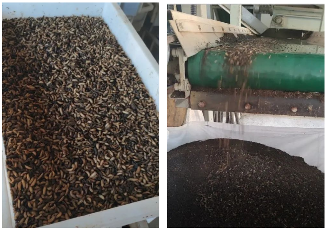 養(yǎng)殖分離系統(tǒng),是利用幼蟲強大的取食和消化能力,將濕垃圾轉(zhuǎn)化為高質(zhì)量的動物蛋白。規(guī)模化的黑水虻處理需要建設(shè)專業(yè)的養(yǎng)殖車間,保持穩(wěn)定的溫度、濕度等外界條件,幼蟲經(jīng)過6-8天的成長后,及時采用蟲料篩分設(shè)備進行蟲糞分離,最終得到鮮(干)蟲和蟲糞有機肥原料。