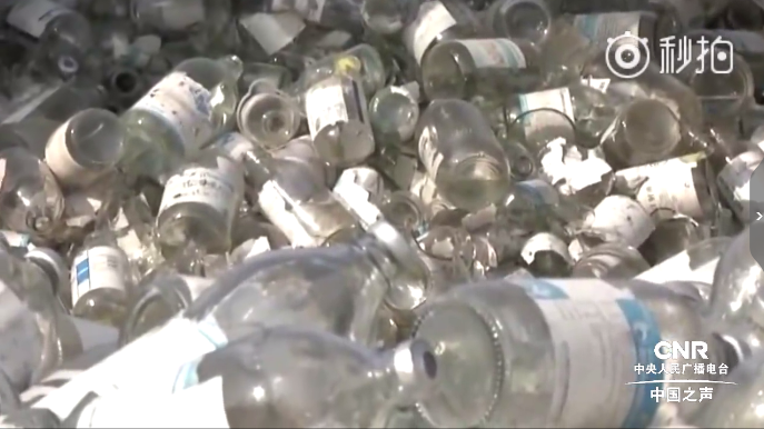 龔恩東:他的來源,涉及到南京十幾家醫(yī)院每個醫(yī)院大概在10噸左右,收了以后他進(jìn)行簡單地分類,輸液瓶歸輸液瓶,輸液袋歸輸液袋。
