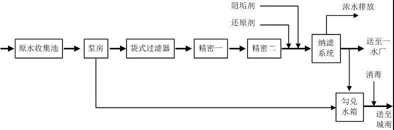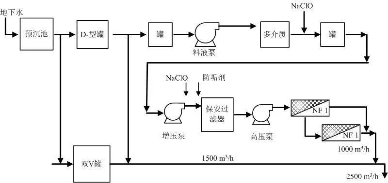 圖6 六壁頭水廠一級兩段式NF處理工藝