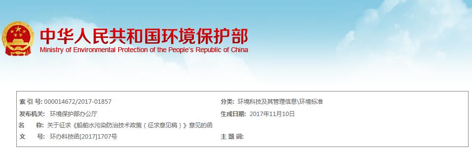 環(huán)保部印發(fā)《船舶水污染防治技術(shù)政策(征求意見稿)》