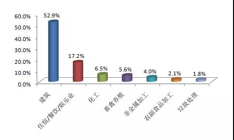從全國舉報情況來看,公眾反映最集中的行業(yè)是建筑業(yè),占52.9%,其次是住宿/餐飲/娛樂業(yè)和化工業(yè),分別占17.2%和6.5%。8-10月舉報次數(shù)較多的企業(yè)有江西省南昌市麥園垃圾填埋場、寧夏回族自治區(qū)銀川市啟元藥業(yè)、廣東省廣州市云埔工業(yè)區(qū)、深圳市紅花嶺垃圾填埋場、下坪垃圾填埋場等。
