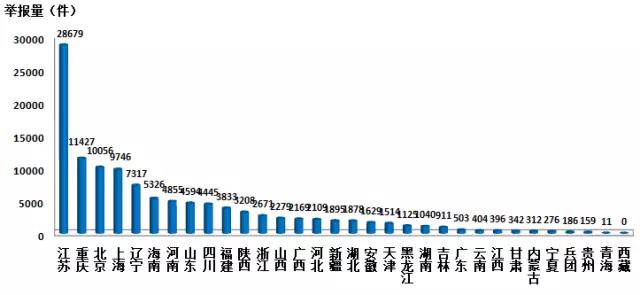 2017年8-10月各省網(wǎng)絡(luò)舉報量圖