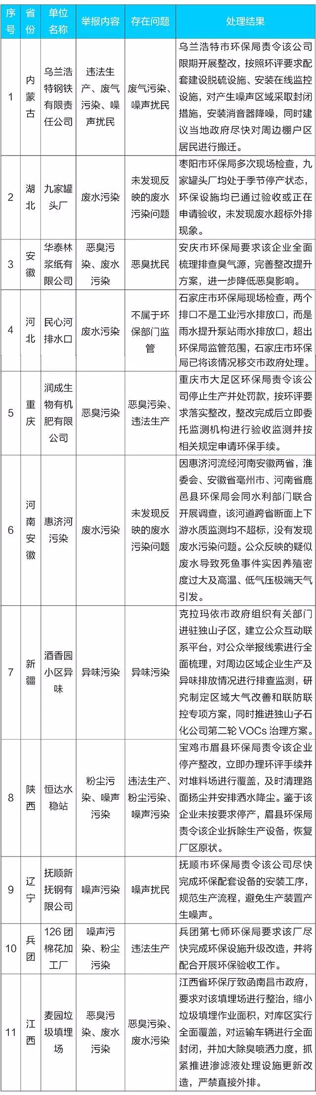 環(huán)境保護(hù)部通過全國環(huán)保舉報聯(lián)網(wǎng)平臺對各地舉報辦理情況進(jìn)行監(jiān)督,對媒體、公眾集中關(guān)注或處理不到位的舉報高度重視,督促地方查清事實,依法實施處理處罰。8-10月共11件督辦情況如下: