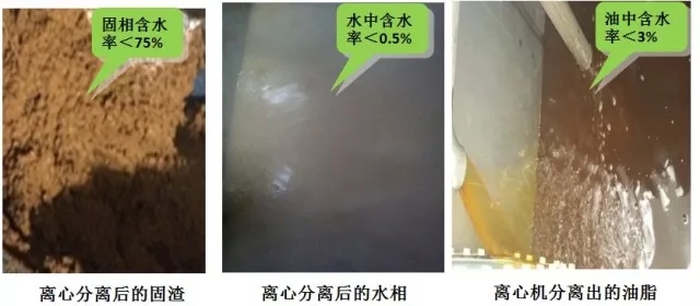 油脂分離主要是將除雜后的漿液進(jìn)行加熱,通過(guò)采用二級(jí)熱解離心提油工藝方式,保證油相的品質(zhì),油脂提取后得到含油率<0.5%的污水,含水率≤3%的粗油脂,經(jīng)濟(jì)價(jià)值顯著。