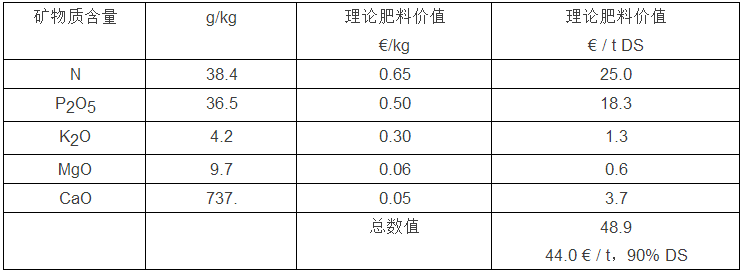 目前在德國瑞士基本上市政污泥以熱處置為主情況下,在法國和美國仍然還存在很大市場,允許干化后市政污泥作為肥料被回收利用。但此時(shí)必須注意, 污泥農(nóng)用時(shí)必須通過肥料中間商的銷售途徑進(jìn)入市場。舉例來說,污泥的理論肥料價(jià)值可通過其中的礦化物質(zhì)組成來計(jì)算(價(jià)格基礎(chǔ) 2007)[6]。不管如何,計(jì)算所獲得的理論商業(yè)價(jià)值要比前面的污泥燃料高出好幾倍。以下表 2 可以清楚地顯示這一點(diǎn)。