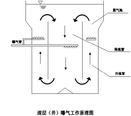 由于是在一個很深的液層內曝氣充氧,它的運轉方式和流體力學特性與傳統(tǒng)(淺層曝氣)方法有很大差異。
