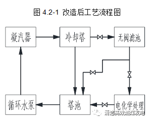 2016年10月底進(jìn)行電化學(xué)處理改造,2016年11月24日開始投入運(yùn)行。改造工藝流程如下圖所示: