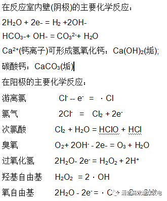電化學(xué)每個(gè)單元是由帶電極的反應(yīng)室、進(jìn)出水管、排污閥門、電源控制柜和維修輔助設(shè)備等幾部分組成。通過直流電流的作用,在反應(yīng)室內(nèi)壁(陰極)附近形成一個(gè)堿性環(huán)境(pH值達(dá)到12-13的范圍),這種強(qiáng)堿性環(huán)境下結(jié)垢物質(zhì)更容易結(jié)晶析出。在陽(yáng)極附近,高達(dá)50%的氯離子轉(zhuǎn)變成游離氯或次氯酸,同時(shí)還生成羥基自由基、氧自由基、臭氧和雙氧水。這些物質(zhì)進(jìn)一步強(qiáng)化了在反應(yīng)室內(nèi)的殺菌、滅藻效果,并且不允許包括軍團(tuán)菌等菌類及微生物的存活;碳酸鈣飽和指數(shù)LSI控制軟件可以確保凝汽器不結(jié)垢、不腐蝕,確保熱交換器熱交換效率高,并且不需要清洗,從而達(dá)到提高生產(chǎn)效率的目的;整個(gè)電化學(xué)過程都是利用水體本源物質(zhì),不產(chǎn)生污染,屬于綠色環(huán)保型的水處理方法。