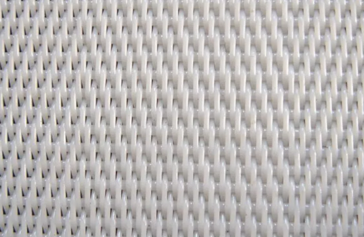 濃縮壓濾一體機(jī)主要利用了濾帶能把水分過濾掉,而把污泥截留到濾帶上的原理進(jìn)行的。濾帶是用高強度的聚酯和尼龍材料的絲線編制而成,這些材料的絲線通過特殊的編織方法做成濾帶后,在高壓拉拽的作用下能保持不變形,下面是一個濾帶的截圖,水分正是通過濾帶編織的絲線之間的縫隙流走的。