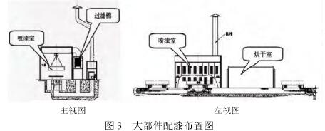 太原廠大部件配漆采用的是干式除漆霧方法,布置如圖3所示。