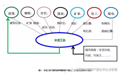 水泥工業(yè)綜合利用工業(yè)固體廢物的歷史悠久。有多少工業(yè)產(chǎn)業(yè)的固廢要依賴水泥工業(yè)和水泥制品產(chǎn)業(yè)安全處置和資源化綜合利用呢?實(shí)在太多,筆者無法作全面統(tǒng)計,尤其是各種工業(yè)過程產(chǎn)生的危險廢棄物,但是圖1中所列出的相關(guān)產(chǎn)業(yè)已足夠令人有一個大觀。據(jù)2010年的數(shù)據(jù),水泥工業(yè)固廢利用已占全國固廢利用量的30%左右。一些業(yè)內(nèi)外人士認(rèn)為水泥工業(yè)利廢是理所當(dāng)然,其實(shí)不然。水泥生產(chǎn)利用可燃廢物,最初是因?yàn)閲夷茉炊倘睍r降低水泥產(chǎn)品生產(chǎn)能耗的需要。水泥熟料生產(chǎn)有著嚴(yán)格的生料化學(xué)組分設(shè)計、成分波動范圍和熟料產(chǎn)品質(zhì)量控制要求,從系統(tǒng)穩(wěn)定生產(chǎn)和質(zhì)量控制上來說,組分變化或波動較大、所含微量元素不同和濃度高低、廢物性能差異較大的各種工業(yè)固廢的利用,均會對水泥生產(chǎn)過程和產(chǎn)品質(zhì)量帶來影響,需要通過研發(fā),采取相應(yīng)的技術(shù)措施加以協(xié)同和消除影響。可以說,每一種廢棄物的利用都必須研發(fā)相應(yīng)的控制技術(shù),水泥工業(yè)的環(huán)保功能是建立在科技創(chuàng)新的基礎(chǔ)之上。