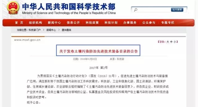 關(guān)于發(fā)布土壤污染防治先進(jìn)技術(shù)裝備目錄的公告