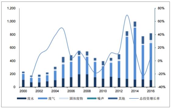 2000年以來環(huán)境治理總投資額變化情況(億元)
