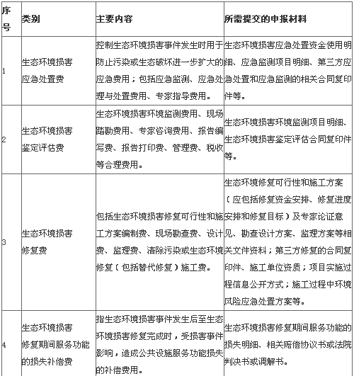 生態(tài)環(huán)境損害賠償資金使用范圍一覽表