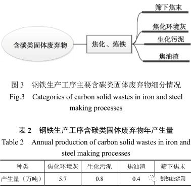 圖 3 為各工序含碳類(lèi)固體廢棄物細(xì)分情況,包括篩下焦末、焦化環(huán)境灰、生化污泥和焦油渣。