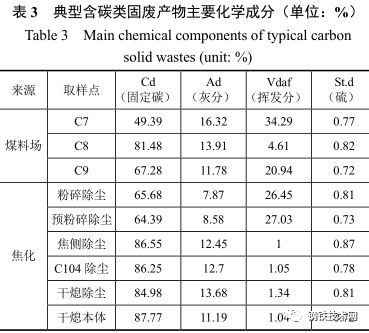 表 3 是典型含碳類(lèi)固體廢棄物主要化學(xué)成分,碳含量較高,適合回收利用。
