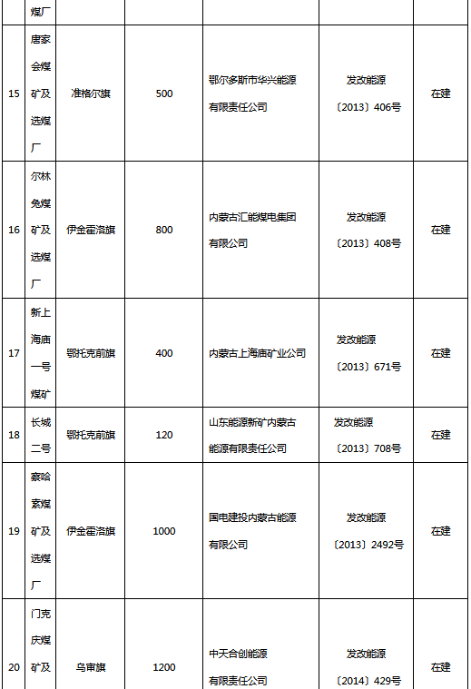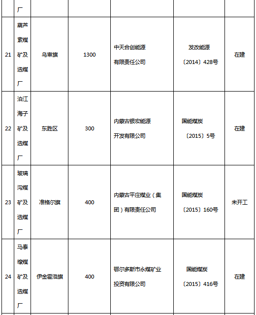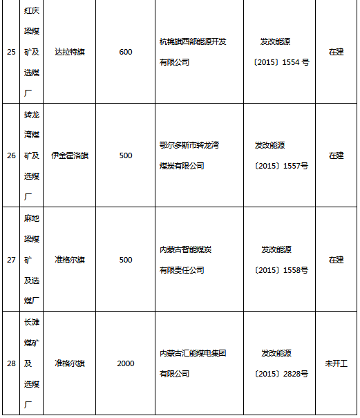 附件:鄂爾多斯市“十三五”續(xù)建煤礦項目表