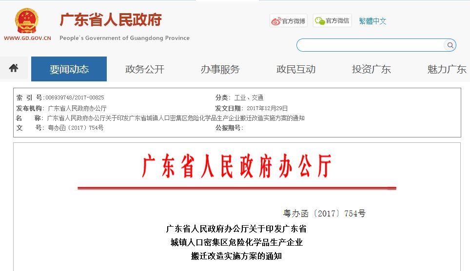 廣東省城鎮(zhèn)人口密集區(qū)危險化學(xué)品 生產(chǎn)企業(yè)搬遷改造實施方案