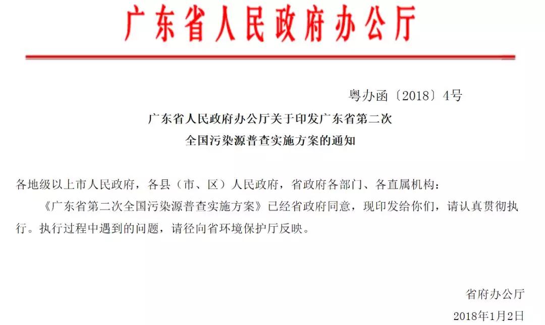 《廣東省第二次全國(guó)污染源普查實(shí)施方案》
