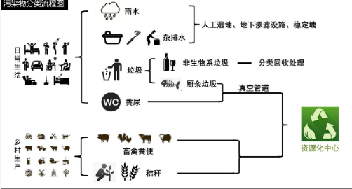 鄉(xiāng)村生活性污染物主要是人體排泄物(糞尿),清洗水,洗漱水與垃圾;生產性污染物主要是畜禽糞便和秸稈。