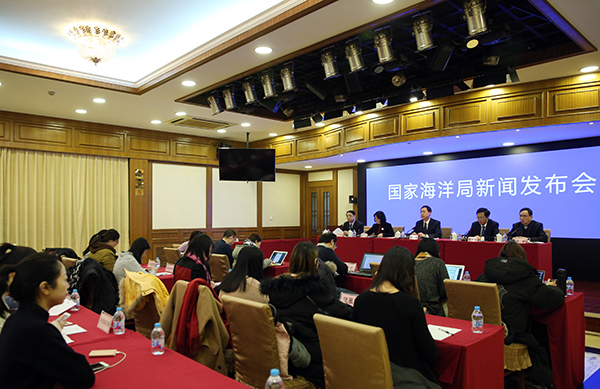 1月17日,國(guó)家海洋局圍填海情況新聞發(fā)布會(huì)現(xiàn)場(chǎng)。 國(guó)家海洋局網(wǎng)站 圖
