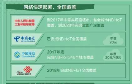 中國工業(yè)和信息化部在2017年6月初下發(fā)《關于全面推進移動物聯(lián)網(wǎng)(NB-IoT)建設發(fā)展的通知》,要求到2020年,中國NB-IoT網(wǎng)絡的基站規(guī)模要達到150萬個,實現(xiàn)對于全國的普遍覆蓋以及深度覆蓋。國內(nèi)三大電信運營商也加快了建設的步伐,預計到2017年底,全國部署超過50萬個NB-IoT基站。