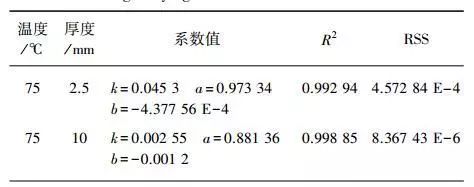表2為2.5 mm污泥150 m干燥失水曲線擬合結(jié)果。由表2可知,Midilli模型的相關(guān)系數(shù)R2數(shù)值最接近1,且殘差平方和RSS最小,因此Midilli模型能較好地模擬出污泥薄層干燥的失水情況。與王靜靜等含油污泥薄層干燥研究的試驗結(jié)論相同。表3為不同條件Midilli模型的擬合結(jié)果。