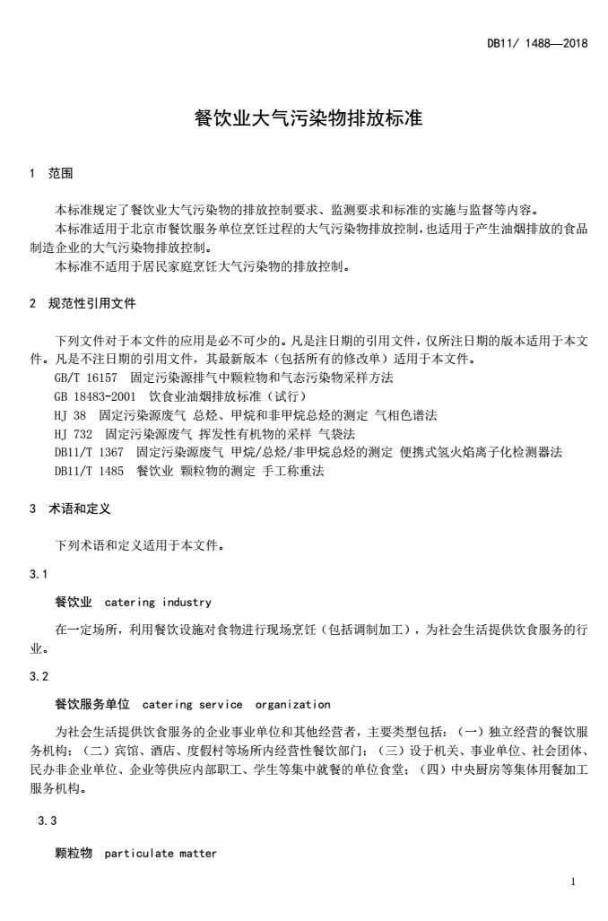 日前,北京市制定并發(fā)布《餐飲業(yè)大氣污染物排放標(biāo)準(zhǔn)》(DB11/1488-2018)(以下簡稱“標(biāo)準(zhǔn)”)。