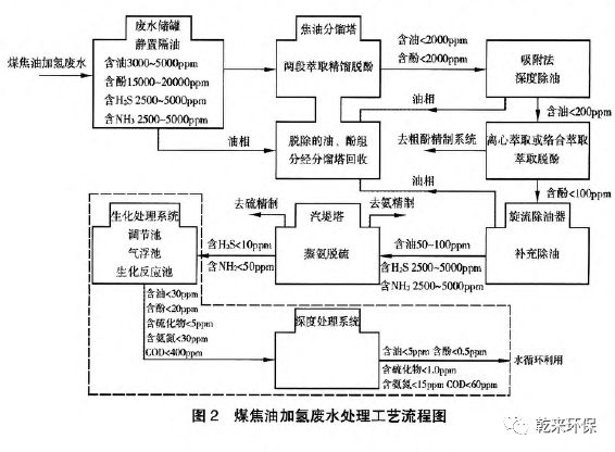 煤焦油加氫廢水的凈化過程主要體現(xiàn)在去除廢水中的酚類物質、氨氮、硫化物和油類有機物。目前工業(yè)上成熟應用的單一廢水處理技術對廢水量、污染物種類、污染物濃度等都有一定的適用范圍,且各種污染物在水中的脫除還存在著相互影響和相互干擾。因此,廢水中的污染物的指標不可能僅通過單一處理技術就達到排放標準的要求。故探究一整套技術成熟可靠、工藝流程合理、設備結構簡單、工程投資低、運行費用少、易維護、能長期穩(wěn)定運行的煤化工廢水處理流程已成為國內外煤化工企業(yè)的重大課題。