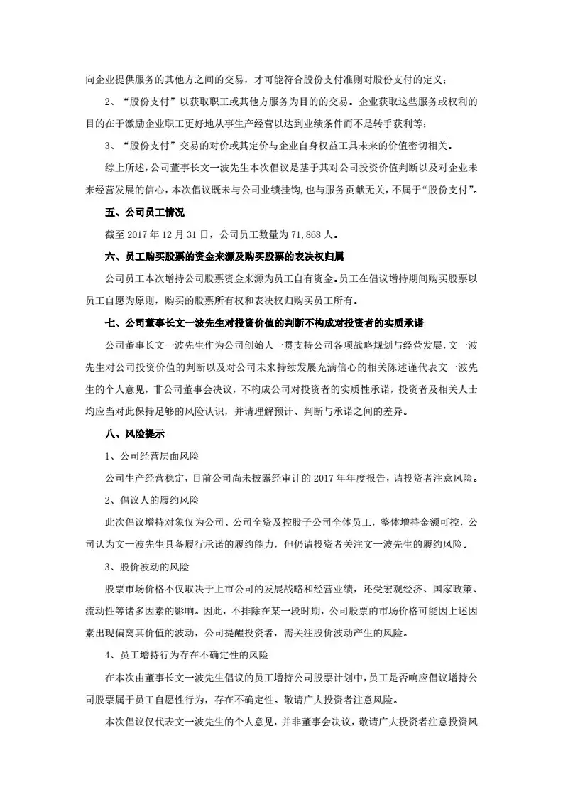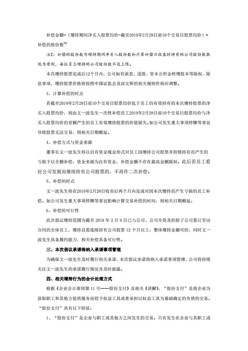 二、補(bǔ)償不設(shè)上限。“董事長文一波先生將以自有資金現(xiàn)金形式對員工因增持公司股票并持續(xù)持有而產(chǎn)生的虧損予以全額補(bǔ)償,資金來源為自有資金,補(bǔ)償金額不存在最高金額限制。”換句話說就是,虧多少,補(bǔ)多少,你虧,董事長補(bǔ)!