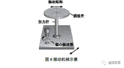 整個膜組件被置于一組振動機械上。振動機械利用馬達和偏心軸承,產(chǎn)生約50 Hz/s 的振動頻率傳到整個膜組,使膜面產(chǎn)生振動。膜面通過往復振動,在膜面產(chǎn)生強大剪切力,鹽分難以停留在膜面上,可有效防止膜面產(chǎn)生表面結(jié)晶。在高鹽濃度下,結(jié)晶和未結(jié)晶的鹽分被推到濃液口外排。振動機械示意見圖6。