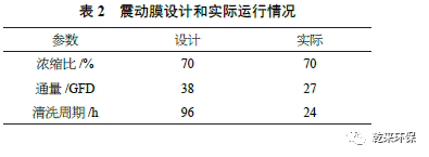 震動膜設(shè)計和實際運行情況比較見表2。