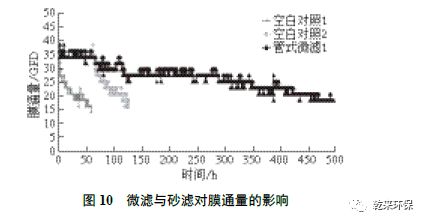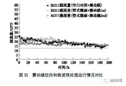 圖11 為震動膜空白和使用兩次微濾預處理的運行結(jié)果對比。