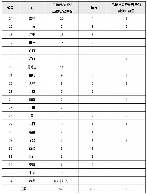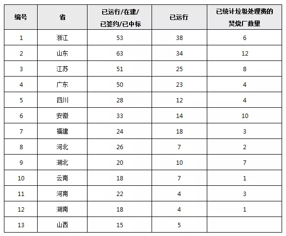 全國各省市垃圾焚燒發(fā)電廠建投及運營數(shù)量