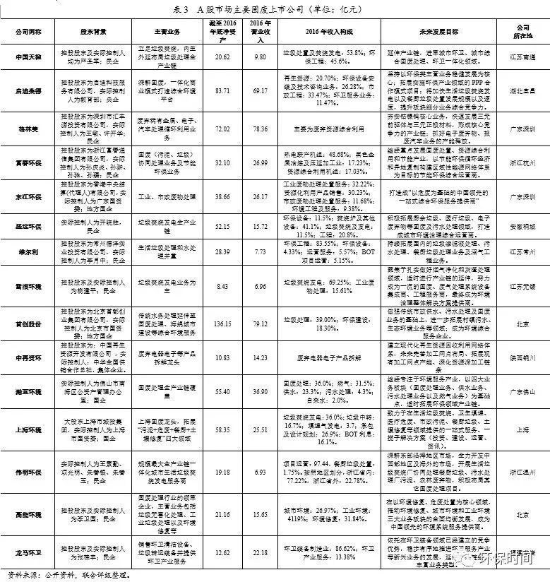 聯(lián)合評(píng)級(jí)對(duì)A股市場(chǎng)從事固廢處理行業(yè)的上市公司進(jìn)行了整理,具體公司情況如下表所示: